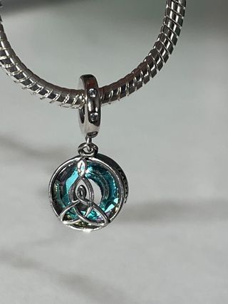 Precioso charm de plata con diseño de madre y e hija, con nudo celta. El detalle central es un cristal de color azul turquesa con reflejos morados. Tiene una inscripción Mom y Daugther. Bañado en plata S925. NUEVO El nudo celta simboliza la conexión eterna, el amor infinito y el vínculo sagrado y duradero entre madre e hija. Compatible con Pandora y similares