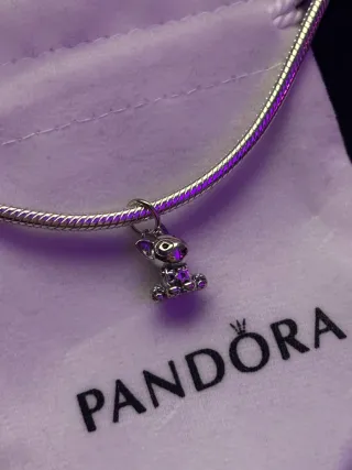 Este charm de plata representa al personaje Stitch. Es un detalle encantador para pulseras pandora - Diseño detallado de Stitch. - Acabado en plata con detalles azules.