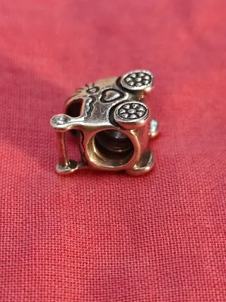 Abalorio auténtico de marca Pandora tiene la forma de un carrito de bebé. - Diseño detallado con corazón. - Ruedas decorativas. - Muy buen estado MAS CHARMS EN MI PERFIL