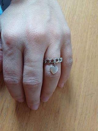 Anillo de plata con un diseño de cadena entrelazada y un charm de corazón colgante. - Material: Plata - Diseño: Cadena entrelazada - Detalle: Charm de corazón