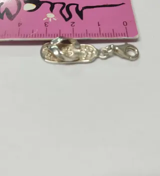Un bonito charm con forma de chancla, adornado con un diseño floral. - Fabricado en plata. - Mide aproximadamente 3 cm de largo. - Cierre tipo mosquetón.