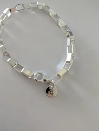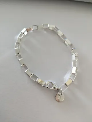 SOLO ENVIOS Elegante pulsera de eslabones rectangulares. - No sé si es chapada o real, no se regasta. - Cierre de mosquetón. - Charm circular con grabado 925.