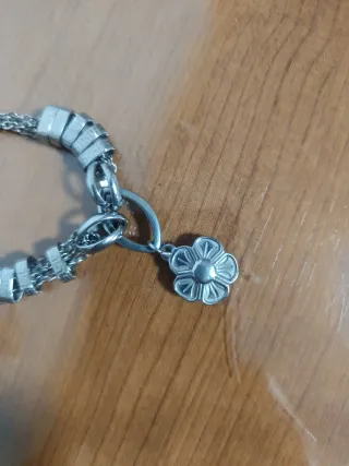 Pulsera plateada con charm de flor