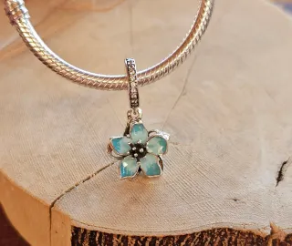 ●Charm Flor Cerezo Azul ●Plata S925 ●Perfecto para añadir a tu pulsera de Pandora ●Va con Bolsita de Terciopelo Negro