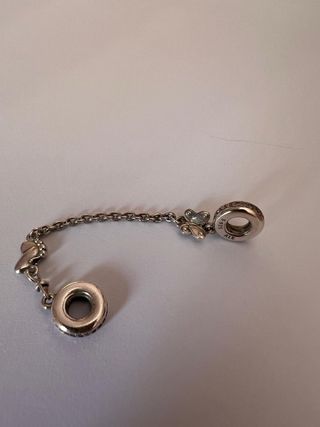 Charm Cadena de seguridad para pulseras Pandora con un diseño de mariposas. - Plata de primera ley. - Cierre seguro para evitar pérdidas.