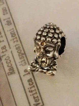 Pequeño charm con la figura de Buda meditando. - Diseño detallado. - Acabado plateado.