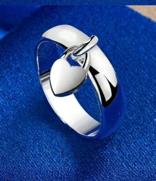 Elegante anillo con un diseño de corazón colgante. Un accesorio delicado y con estilo. - Diseño: Corazón colgante Talla 7 @ abalorio dije charm