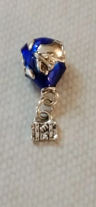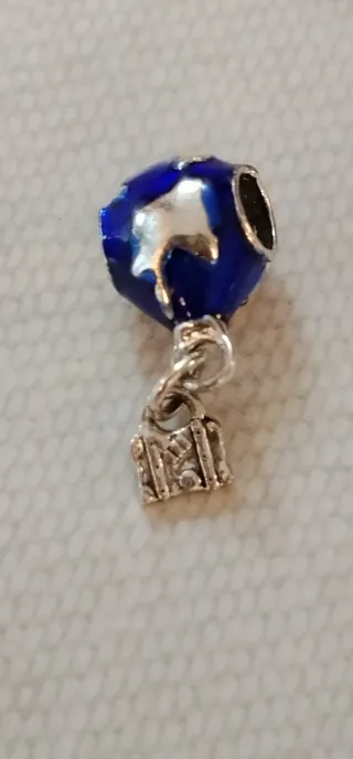 Este charm representa un globo terráqueo con un diseño detallado y una pequeña maleta colgante. - Diseño de globo terráqueo con continentes. - Colgante de maleta de viaje. - Acabado plateado y esmalte azul.