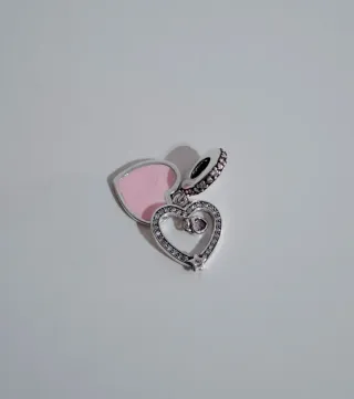 Este charm presenta un diseño encantador de dos corazones entrelazados. - Elaborado en plata. - Detalles en forma de corazón. - Piedras de color rosa.