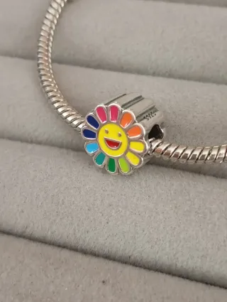 Charm de plata S925 nuevo de flor sonriente diseño de Takashi murakami Superflat kaikai kiki Otaku Kawaii flowers arte contemporáneo urbano japonés Japón Compatible con pulseras de abalorios charms dijes de colección estilo pandora y similares Descuento en lotes