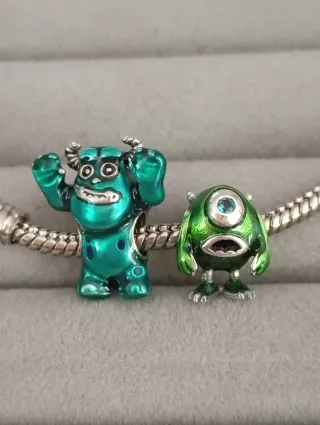 Lote de dos charms, Sulley y Mike Wazowsky personajes de la película Monstruos S.A. de Disney Pixar Muy detallados Compatible con pulseras de abalorios charms dijes de colección estilo pandora y similares Sí te gusta algún modelo reservado pregúntame Descuento en lotes