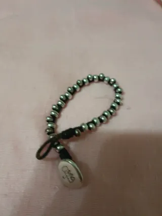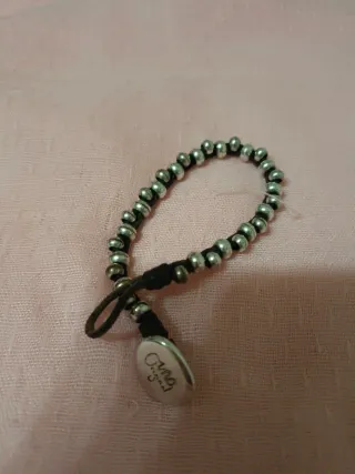 Elegante pulsera con bolitas plateadas y detalles en negro. Cuenta con un charm ovalado. - Diseño moderno y versátil. - Cierre ajustable.