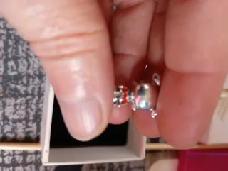 Charm de Pandora con forma de coche y árbol de Navidad. - Diseño detallado en plata. - Detalles en esmalte rojo y verde. Se vende con la cajita original. Nunca se ha usado , lo tengo repetido.