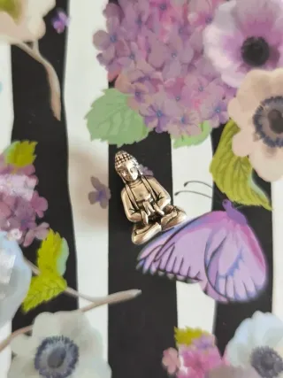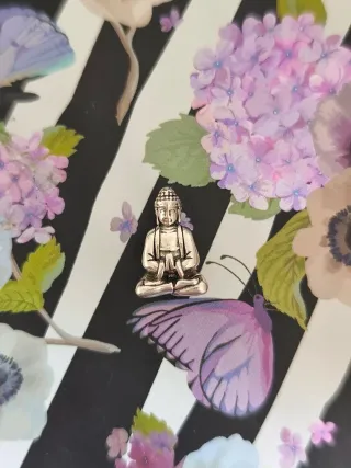 Pequeño charm con la figura de un Buda meditando. - Diseño detallado. - Acabado plateado.