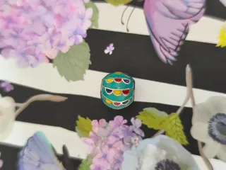 Charm de plata con esmalte en forma de búho. - Diseño detallado con ojos morados. - Esmalte multicolor en tonos verde y rojo.