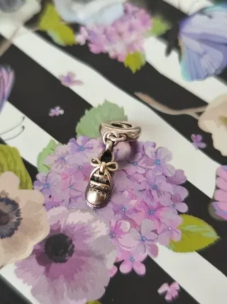 Precioso charm de plata 925 con forma de zapatilla y un detalle de lazo. - Diseño detallado de zapatilla. - Adorno de lazo. - Material: Plata 925.