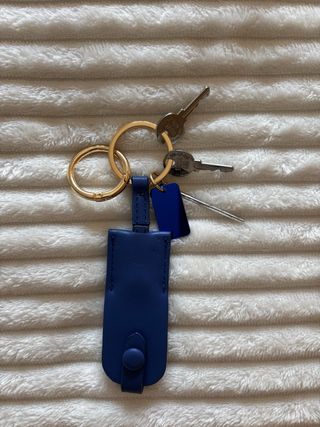 Este llavero Perfois es un accesorio elegante y funcional. - Diseño con charm para bolso o mochila. - Combinación de colores azul y dorado.