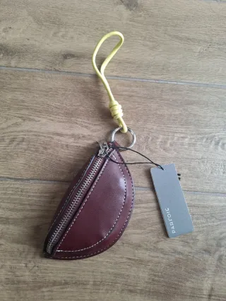 Charm de Parfois para colgar en bolsos o mochilas o para usar como llavero. Con diseño en forma de media luna. Pequeño monedero ideal para llevar auriculares o pequeños artículos Combinación de colores marrón y amarillo. Nuevo a estrenar