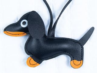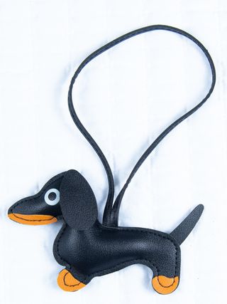 Accesorio charm ideal para bolso o llavero de un perrito salchicha. Diseño en color negro. Detalles en color marrón clarito en las patas y hocico. Tiene una tira para colgar. Medidas: Largo 12,5 cm x Alto 8 cm - Fabricado en material similar al cuero. - Detalles en naranja en el hocico y las patas. - Incluye una tira para colgar.