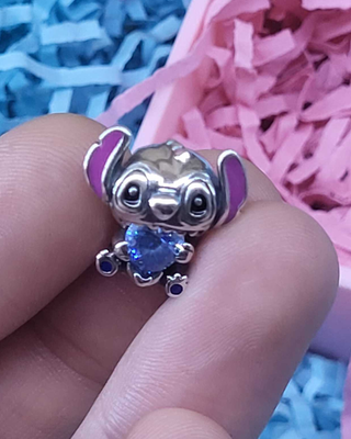 Encantador charm de Stitch de Disney, con detalles en plata y morado. - Diseño icónico de Stitch, Simba, Capt.America - Acabado plateado brillante. - Detalles en esmalte morado en las orejas.