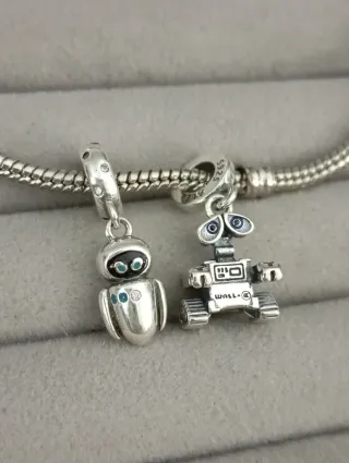 Pareja de charms de plata S925 de Wall-E y su novia Eva, personajes de la película de disney pixar Compatibles con pulseras de abalorios charms dijes de colección estilo pandora y similares Descuento en lotes