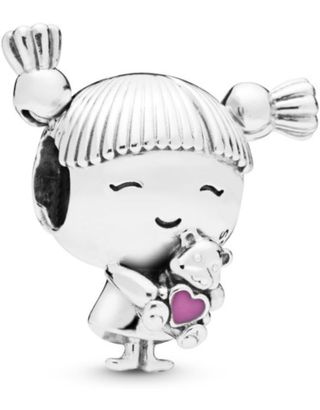 Este encantador charm de Pandora representa a una niña abrazando a su osito de peluche, que lleva un corazón rosa. - Diseño detallado de una niña con coletas. - Incluye un tierno osito de peluche. - El osito sostiene un corazón rosa. - Fabricado en plata. - Color plata y rosa.