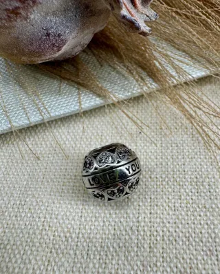 Charm con diseño de Love You y corazones. - Fabricado en plata. - Diseño calado con corazones. - Inscripción Love You.