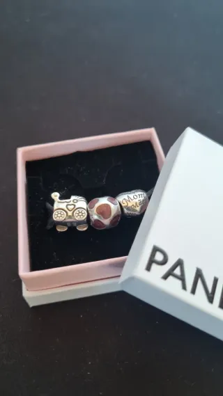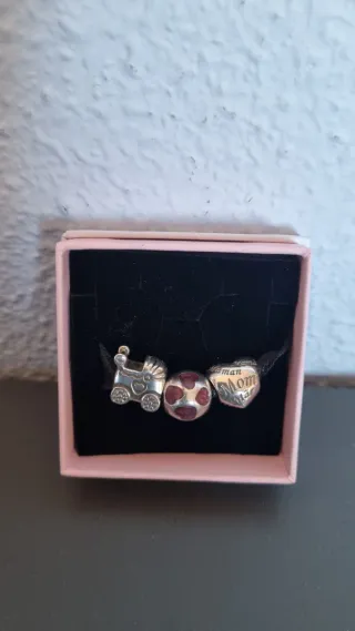 Lote 3 charms Pandora Mamá Corazón Cochecito