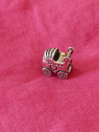 Preciosa charm de Pandora en plata de ley, con forma de cochecito de bebé. Es un artículo encantador y delicado. - Perfecto para añadir a tu pulsera Pandora. - Diseño detallado del cochecito. - Incluye un pequeño corazón en el centro.