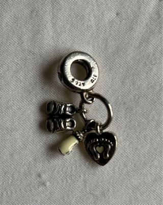 Charm encantador con motivos de bebé: incluye un biberón, unos zapatos y huellas. Ideal para la pulsera de Pandora y Pulseras similares. Se puede poner en un colgante. Diseño muy detallado y original. De Plata, tiene el sello s925. Cómo regalo acertarás seguro, es un bonito detalle. Sin plomo, sin níquel, es antialérgico no daña la mano. Tengo más Charms en mi perfil todos están sin estrenar y a buen precio. Hago envíos :) - Charm con: biberón, zapatos y huellas de bebé. Muy emotivo y detallado. Llévalo siempre contigo en tu pulsera de Pandora o en tu colgante favorito. -El regalo ideal o para darte un capricho. -De Plata s925.