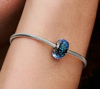 Charm de cristal de Murano con detalles en plata. Su diseño evoca la profundidad del océano. - Cristal de Murano auténtico. - Detalles en plata. - Diseño único y llamativo. Precio NO negociable.