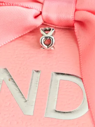 Charm especial contra el cáncer de mama de plata y lazos rosas esmaltados de la marca Pandora.