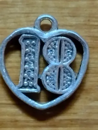 Charm de Pandora con forma de corazón y el número 18. - Diseño con detalles. - Le falta la argolla para colgar.