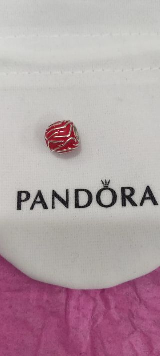 Charm de Pandora con un diseño llamativo en tonos rojos y plateados. Perfecto para añadir un toque de color a tu pulsera. Con bolsita 13€ - Diseño de rayas en espiral. - Acabado brillante.