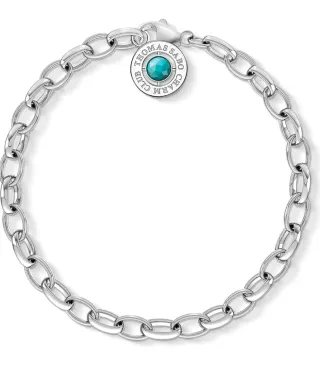 Elegante pulsera de eslabones de la marca Thomas Sabo, con un charm central adornado con una piedra turquesa. - Diseño de eslabones ovalados. - Charm redondo con inscripción. - Piedra turquesa facetada.