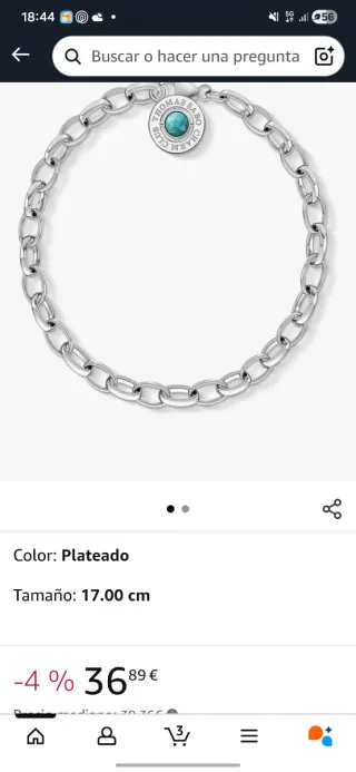 Elegante pulsera de la marca Thomas Sabo. - Diseño de eslabones. - Cierre de mosquetón. - Charm circular con grabado. Es la medida mas ancha,tengo otra mas fina en mi perfil