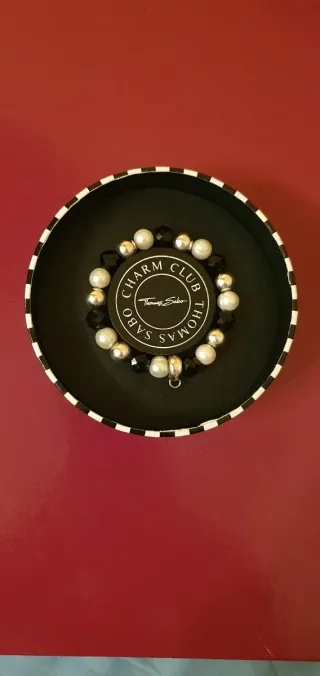 Elegante pulsera de la marca Thomas Sabo. Diseño con cuentas negras y plateadas perlas de concha auténticas De la colección Charm Club de Thomas Sabo. Incluye un charm colgante. Con un elegante embalaje original. Ya no está disponible en la tienda Thomas Sabo ni en otras joyerías. Me lo regalaron hace unos 10 años. Rara vez lo he usado.
