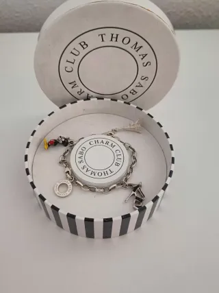 Elegante pulsera de la marca Thomas Sabo. - Fabricada en plata de ley. - Diseño de eslabones con charm circular. - Cierre de mosquetón. Regalo la de cuerdas. Lo vendo porque es un regalo de mi exmarido. Sin caja.