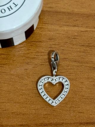 Colgante con forma de corazón de la marca Sabo Thomas Charm Club. - Diseño abierto en forma de corazón. - Borde adornado con pequeñas cuentas o perlas. - Cierre tipo mosquetón para pulseras o collares.