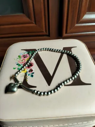 Elegante pulsera de plata con un bonito charm en forma de corazón. Un accesorio delicado y con estilo. - Diseño de cuentas plateadas. - Colgante de corazón.