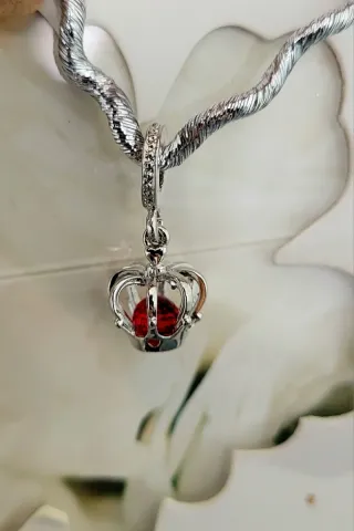 👑 Espectacular charm Corona Real 👑 Corona abierta y dentro una piedra cristal rojo florando 👑 El aro superior adornado con pequeñas circonitas 👑 Nuevo 👑 Compatible con pulseras tipo Pandora, Troll, Chamilia, Biagi u otros