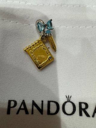 Este encantador charm de Pandora, inspirado en Bridgerton, presenta un diseño detallado de un libro abierto y una pluma. - Charm con forma de libro y pluma. - Detalles en color dorado y azul. - Incluye un pequeño lazo azul. Nuevo y en su bolsa pandora