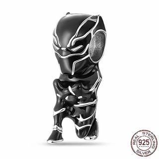 Charm con diseño inspirado en Black Panther de Marvel. Fabricado en plata de ley 925. - Detalle de líneas plateadas sobre fondo negro. - Diseño tridimensional. - Apto para pulseras de charms pandora o similares.