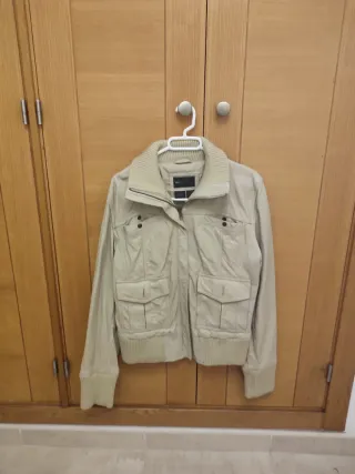 Abrigo de paño con un diseño moderno y elegante. - Cierre de cremallera y botones. - Bolsillos frontales. - Puños con detalle de botón. - Cuello con solapas y botones decorativos.