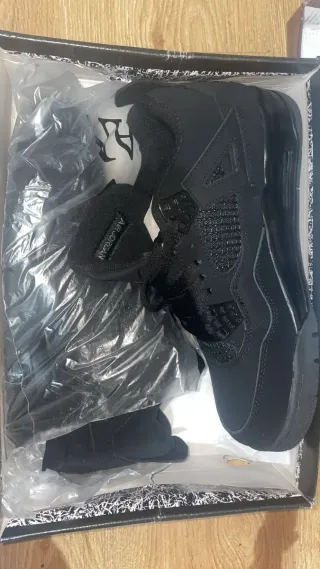 Zapatillas Jordan 4 en color negro. Se venden porque me quedan pequeñas. Mi novia me las quiso regalar por navidad pero escogio una talla más y me quedan pequeñas. Las cogió hace un mes y ya a pasado el periodo de devolución de 15 días. La caja vino dañada pero las zapatillas están en perfecto estado - precio negociable💵 - zapatillas sin estrenar👟 -caja en mal estado pero zapatillas en perfecto estado 📦 -cualquier duda podéis escribirme ❓