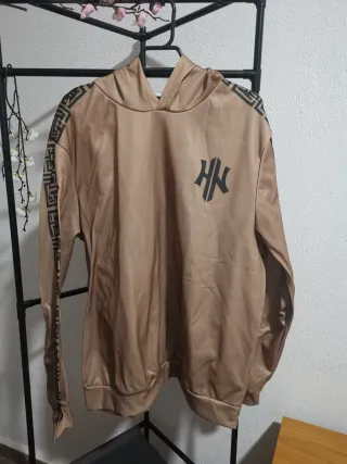Sudadera de color beige con un diseño moderno. - Detalle de estampado en las mangas. - Logo distintivo en el pecho.
