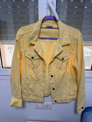 Chaqueta vaquera de color amarillo. - Diseño clásico. - Cierre de botones. - Dos bolsillos en el pecho.
