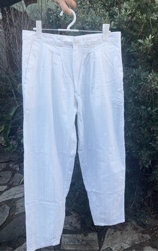 Pantalón de algodón en color blanco. Presenta un diseño con finas rayas verticales. - Material: Algodón. - Color: Blanco.