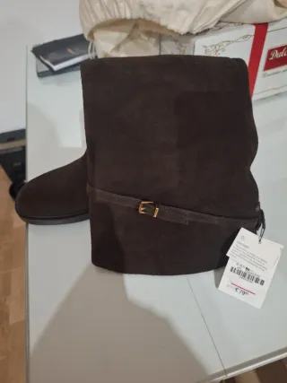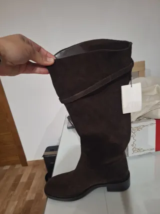 Botas altas de la marca Zara en color marrón. - Material de ante. - Diseño de caña alta. - Detalle de tira. - Etiqueta incluida. - Costaron 80€