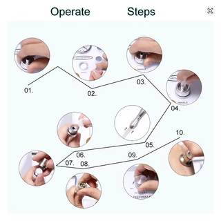 Equipo profesional para tratamientos de estética facial y corporal. - Incluye 9 puntas de diamante de diferentes tamaños. - 3 mangos para las puntas. - Manguera de succión. - Filtros de algodón. - Adaptador de corriente. Proporciona un procedimiento de rejuvenecimiento de la piel no quirúrgico mediante el uso de cabezas de diamante estériles para pelar y frotar las células muertas en la capa superior de la piel seguido de aspirar/succión eliminando partículas junto con cualquier suciedad y muertos. Piel. 2. Este procedimiento elimina los restos de piel, cicatrices, manchas, arrugas y pigmentación desigual de la piel. Enchufe EU